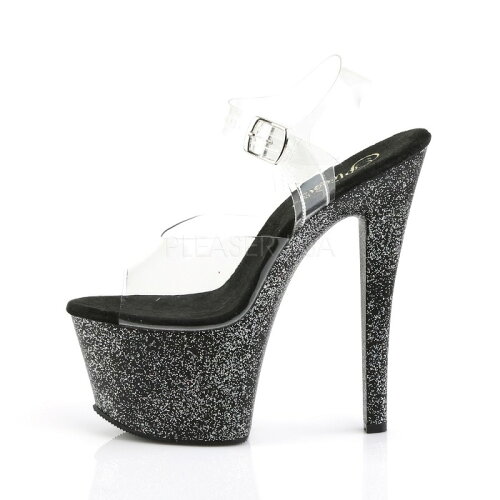取寄せ靴 送料無料 衣装靴 ベルト付き 厚底 サンダル かわいいラメストーム 17.5cm ヒール クリア 黒 ブラック グリッター Pleaser プリーザー 大きいサイズあり イベント 仮装 女装 男装 パーティ- ハロウィン コスプレ